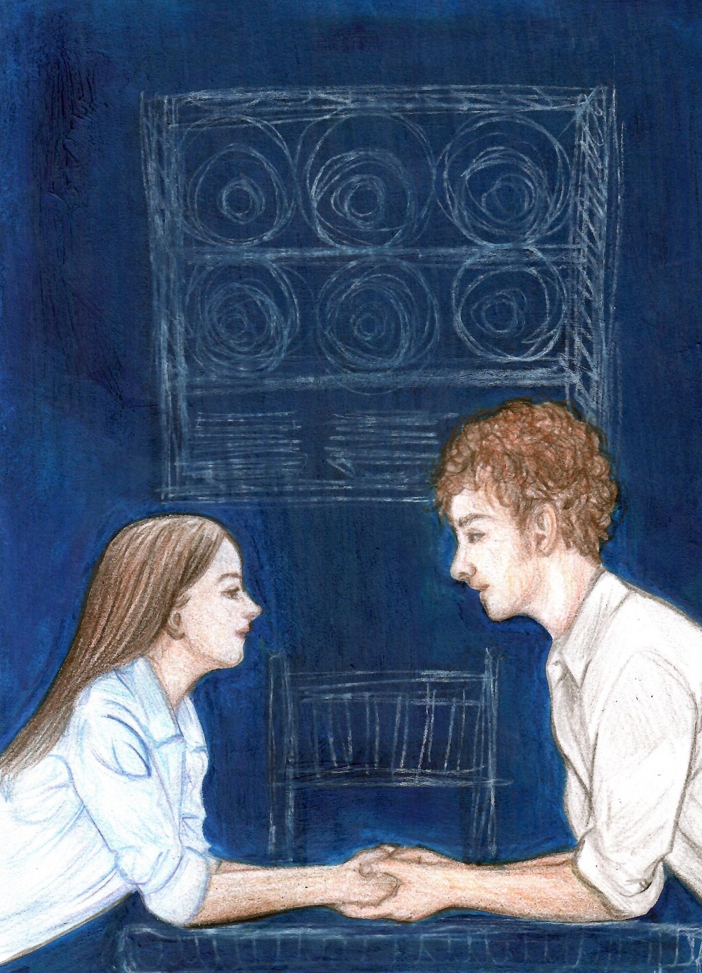 de la mano, garabateada puerilmente. Ella con pelo largo, él, cabello rizado casi
