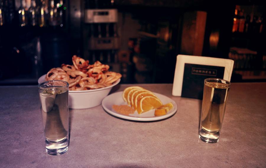 Orquídea, regresando de prisa a la barra, sirvió dos mezcales.