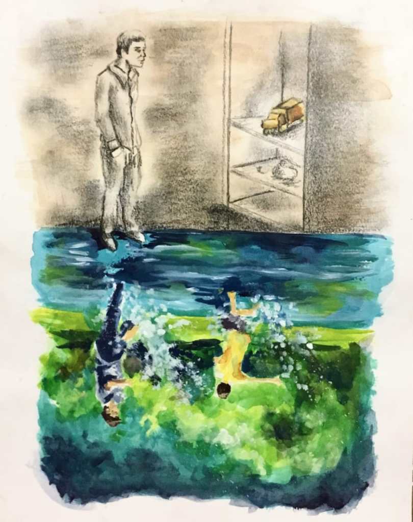 ”En la escuela, a veces, cuando llovía, sabíamos Ángel y yo que por allí venía el chaparrón, pero sólo podíamos captar su fugaz furia por el sonido de los truenos o por el agua que caía en el techo. Imposible atentar contra la autoridad de aquella maestra, para levantarnos y poder contemplarlo desde la ventana como si se tratara de la aparición de un verdadero ángel. No había permisos para prestar un lápiz al compañero más cercano, ni para ir a orinar. Con nostalgia sabíamos que desde el chaparrón todo era distinto al hagan filas, copien lo que está en la pizarra, ¡compórtense! Frente a tanta opresión, Ángel y yo teníamos la certeza de que el chorrerón de la casa era nuestro exclusivo salvoconducto a la libertad. Mamá, finalmente, se volvió más permisiva pues entendió que después de los truenos, con el chaparrón cayendo sobre nuestros cuerpos, nosotros éramos felices. Si alguna vez nos resfriamos simplemente nos llevó al médico, pero nunca le dijo a papá que era a causa del chorrerón. Jamás nos lo dijo, pero quizás, cuando mamá fue niña, tuvo también una vida silvestre correteando en la hacienda en que se crio. Sin embargo, la felicidad no dura tanto, y un día sin darnos cuenta el chaparrón se acabó, porque a medida que crecimos ya nos dio pena a Ángel y a mi mostrar a los demás nuestras frágiles y desnudas anatomías, nuestras genitales vergüenzas.”